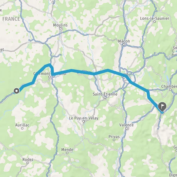 Prendre à droite et rejoindre A89 E70. Continuer sur 84 kilomètres