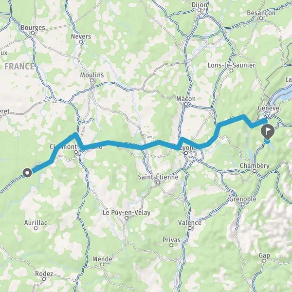 Prendre à droite et rejoindre A89 E70. Continuer sur 84 kilomètres