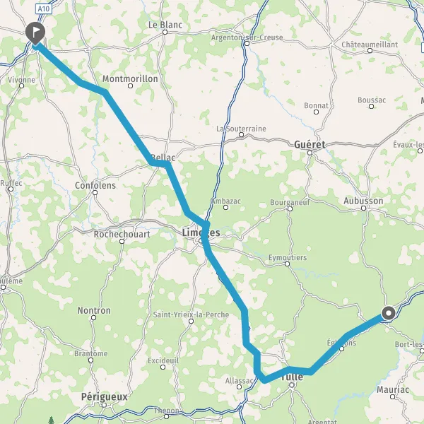 Prendre à droite et rejoindre A20. Continuer sur 75 kilomètres