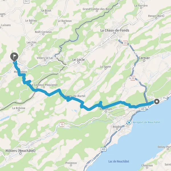 Au rond-point, prendre la 2ème sortie sur 10 (Rue de Neuchâtel) et continuer sur 20 mètres