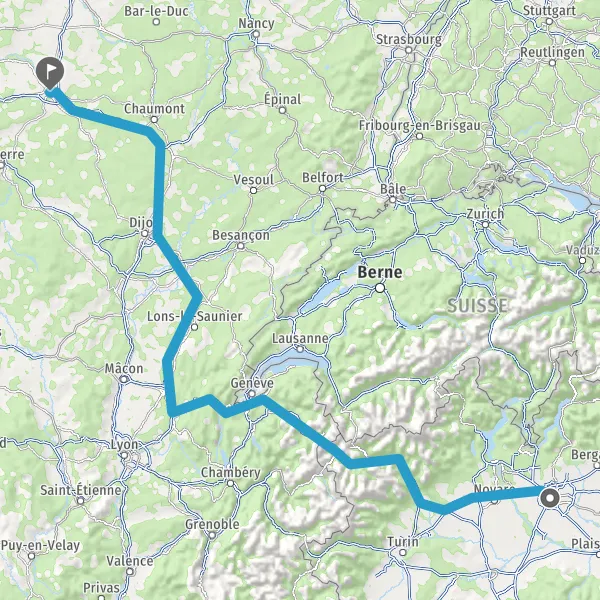 Prendre à gauche et rejoindre A36 E54 E60. Continuer sur 186 kilomètres