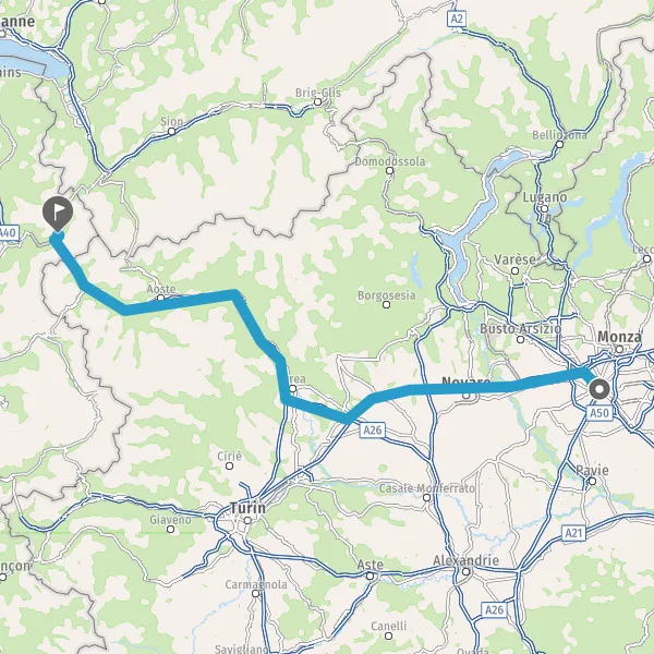 A26E25AlessandriaGenovaE25IvreaA5T1E25Monte BiancoT2E27Gran San Bernardo