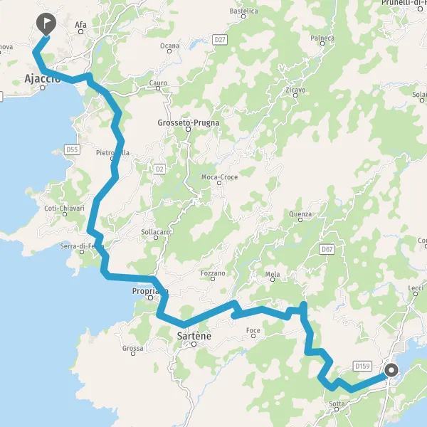 Tourner à gauche sur D248 (Zuccali) et continuer sur 6,5 kilomètres