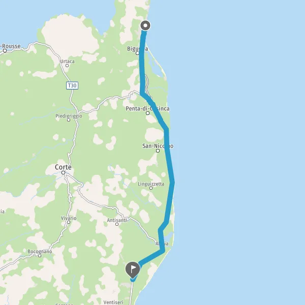 Au rond-point, prendre la 2ème sortie sur T10 (Diceppo) et continuer sur 3,1 kilomètres