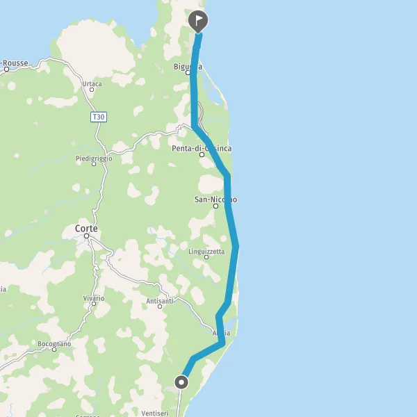 Au rond-point, prendre la 2ème sortie sur T20 (Corsu Lucciana) et continuer sur 1,3 kilomètre