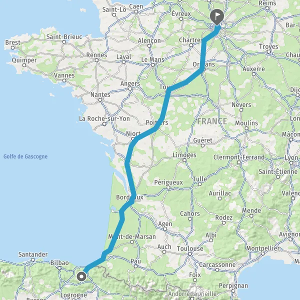 Payer 2,00 € (Péage Biriatou) Autoroute de la Côte Basque Payer 2,80 € (Péage La Negresse) Payer 4,30 € (Péage Benesse) Payer 4,40 € (Péage Castets) Payer 4,40 € (Péage Saugnacq-et-Muret) 55 km