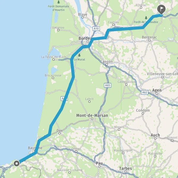 Payer 2,00 € (Péage Biriatou) Autoroute de la Côte Basque Payer 2,80 € (Péage La Negresse) Payer 4,30 € (Péage Benesse) Payer 4,40 € (Péage Castets) Payer 4,40 € (Péage Saugnacq-et-Muret) 4,8 km