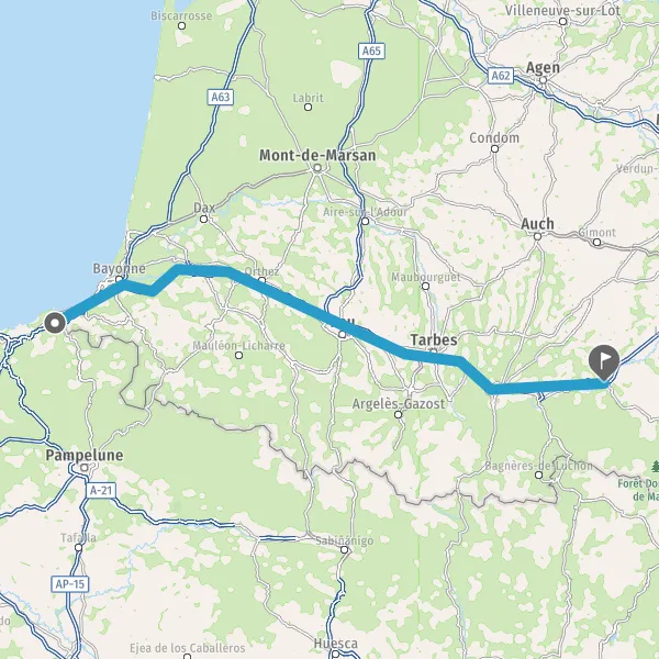 Prendre à droite et rejoindre A64 E80. Continuer sur 221 kilomètres
