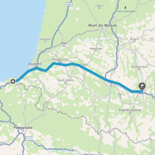 Prendre à droite et rejoindre A64 E80. Continuer sur 136 kilomètres