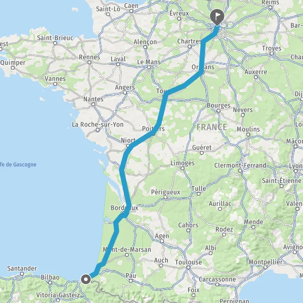 Continuer E5 (L'Aquitaine) sur 427 kilomètres