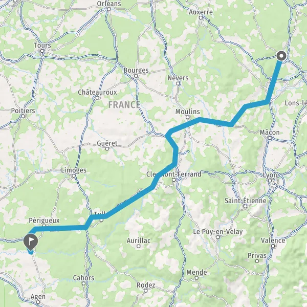 Prendre à droite et rejoindre A89 E70. Continuer sur 160 kilomètres