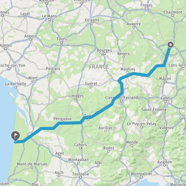 Prendre à droite et rejoindre A63. Continuer sur 25 kilomètres