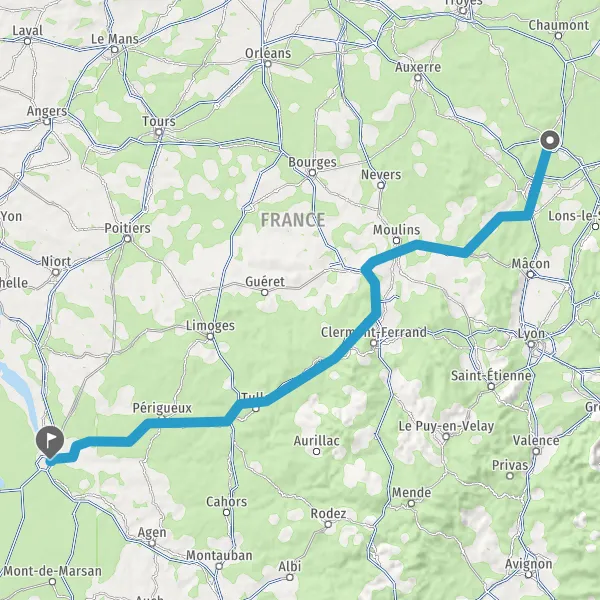 Prendre à droite et rejoindre A89 E70. Continuer sur 160 kilomètres