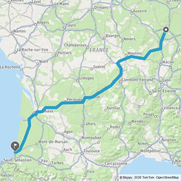 Prendre à droite et rejoindre A63. Continuer sur 154 kilomètres