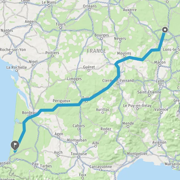 Prendre à droite et rejoindre A63. Continuer sur 130 kilomètres