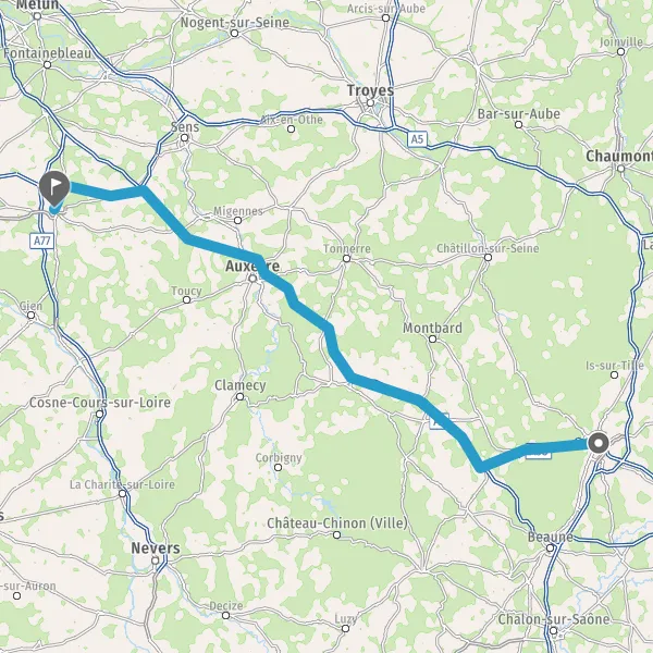 Prendre à gauche et rejoindre A6. Continuer sur 150 kilomètres