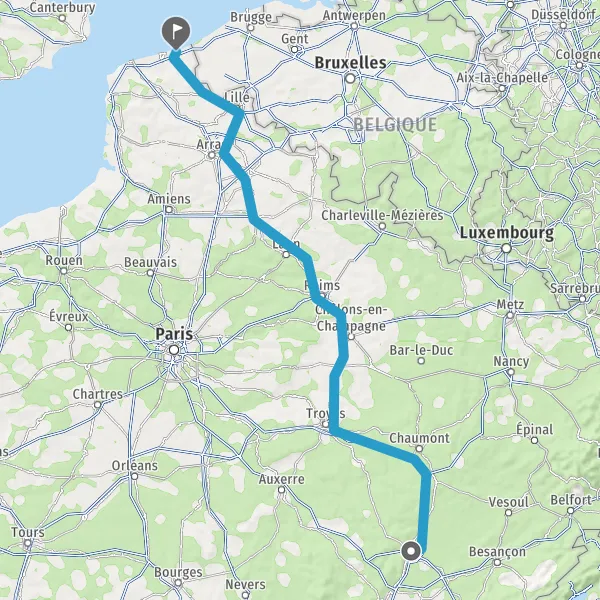 Prendre à droite et rejoindre A26 E17. Continuer sur 96 kilomètres