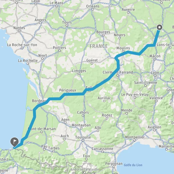 Prendre à droite et rejoindre A63. Continuer sur 205 kilomètres