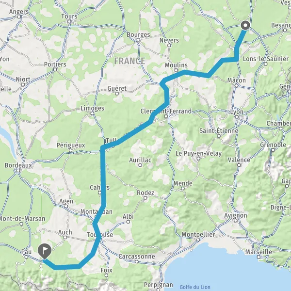Prendre à droite et rejoindre A89 E70. Continuer sur 160 kilomètres