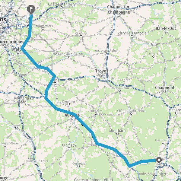 Prendre à gauche et rejoindre A6. Continuer sur 150 kilomètres