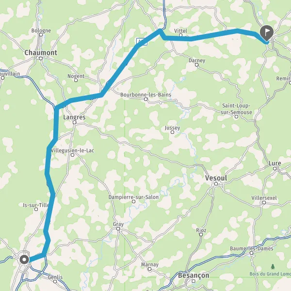 Au rond-point, prendre la 4ème sortie sur D165 D429 (Route de Contrexéville) et continuer sur 1 kilomètre