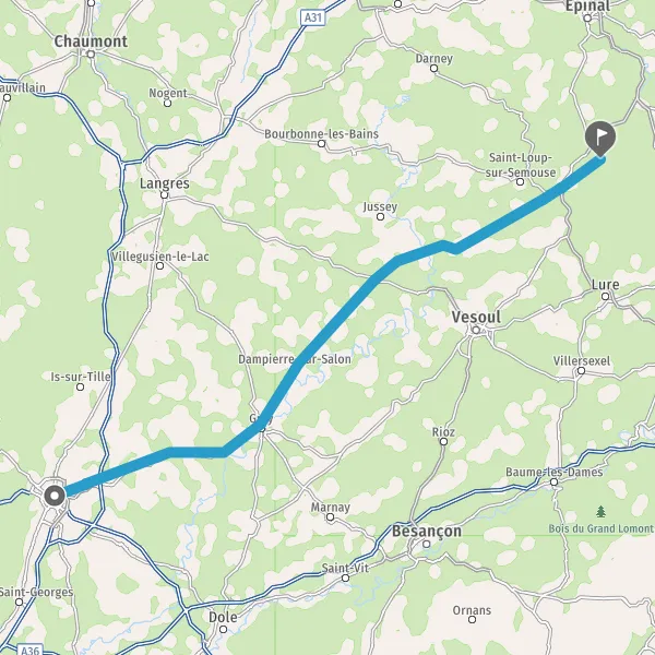 Tourner à gauche sur D28 (Route de Luxeuil) et continuer sur 5,8 kilomètres