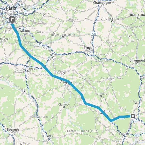Prendre à gauche et rejoindre A6. Continuer sur 240 kilomètres