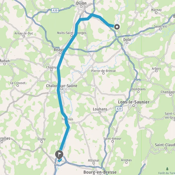 Prendre à droite et rejoindre A39. Continuer sur 15 kilomètres