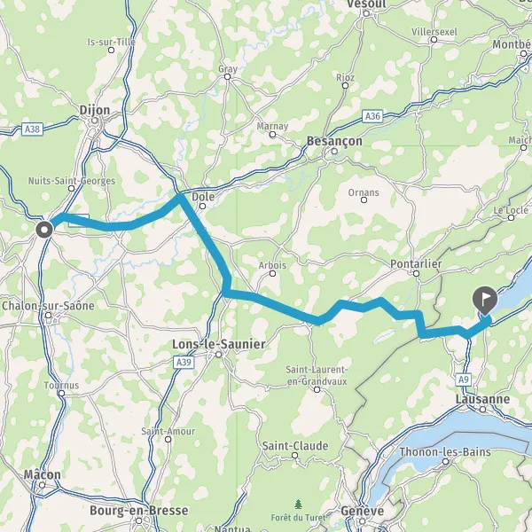 Prendre à droite et rejoindre A36. Continuer sur 82 kilomètres