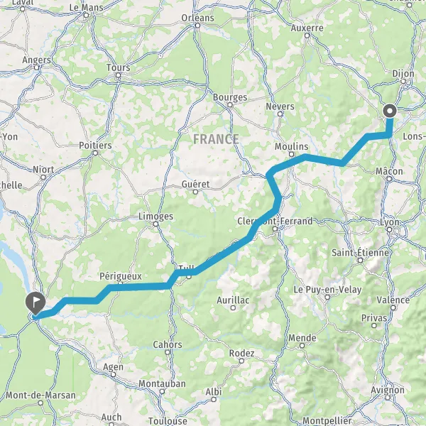 Prendre à droite et rejoindre A89 E70. Continuer sur 160 kilomètres
