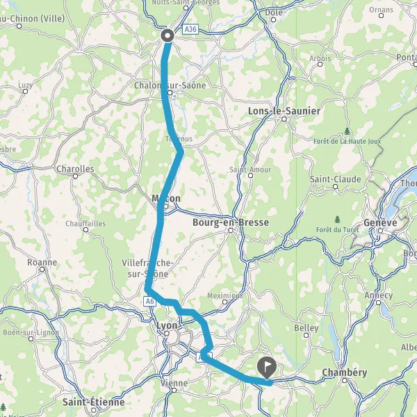 Prendre à droite et rejoindre A6. Continuer sur 124 kilomètres