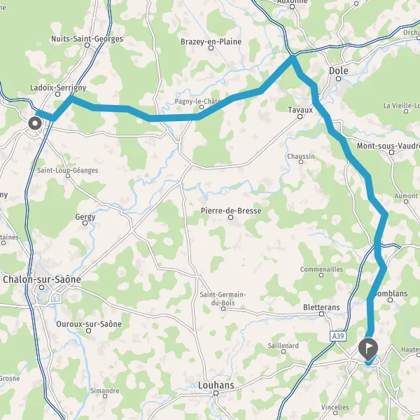 Prendre à droite et rejoindre A39. Continuer sur 35 kilomètres