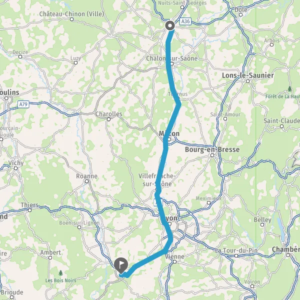 Prendre à droite et rejoindre A6. Continuer sur 124 kilomètres