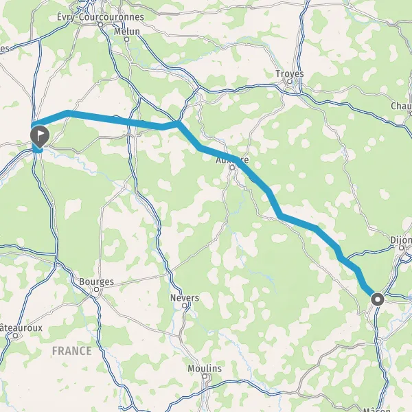Prendre à droite et rejoindre A6 E60 E15. Continuer sur 187 kilomètres