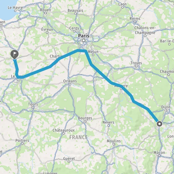 Prendre à droite et rejoindre A6 E60 E15. Continuer sur 274 kilomètres