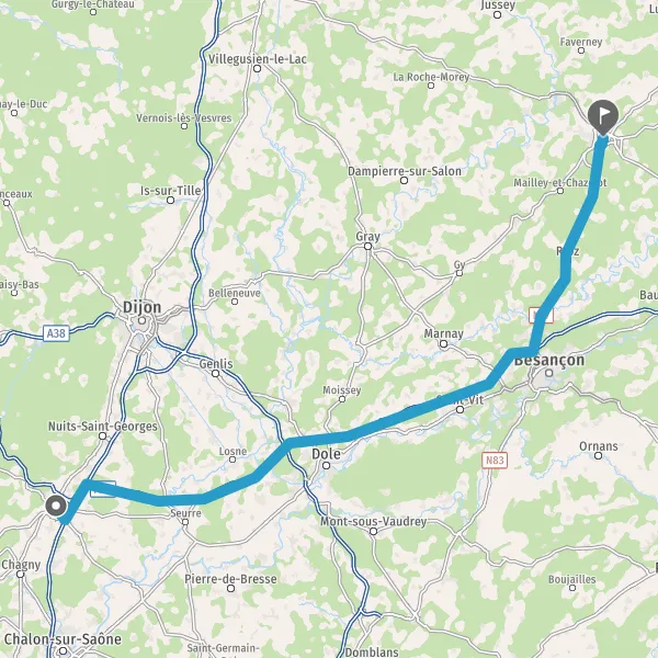 Prendre à droite et rejoindre A36. Continuer sur 92 kilomètres