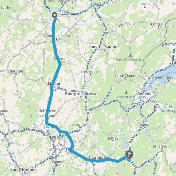 Prendre à droite et rejoindre A6. Continuer sur 124 kilomètres