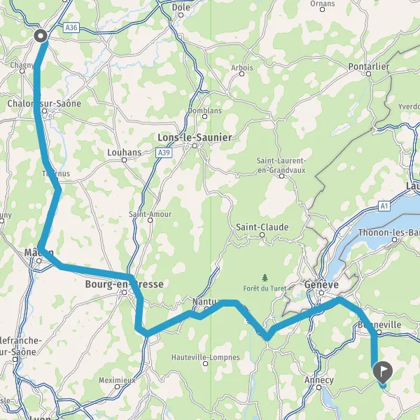Prendre à droite et rejoindre A41. Continuer sur 24 kilomètres