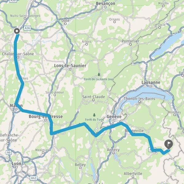 Prendre à droite et rejoindre A40. Continuer sur 60 kilomètres