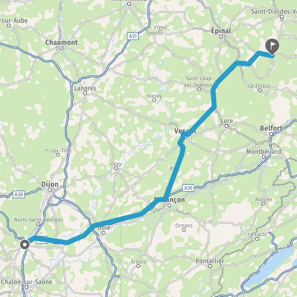 Prendre à droite et rejoindre A36. Continuer sur 92 kilomètres