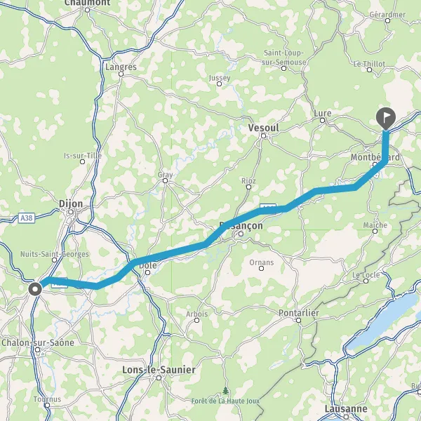 Prendre à droite et rejoindre A36. Continuer sur 180 kilomètres