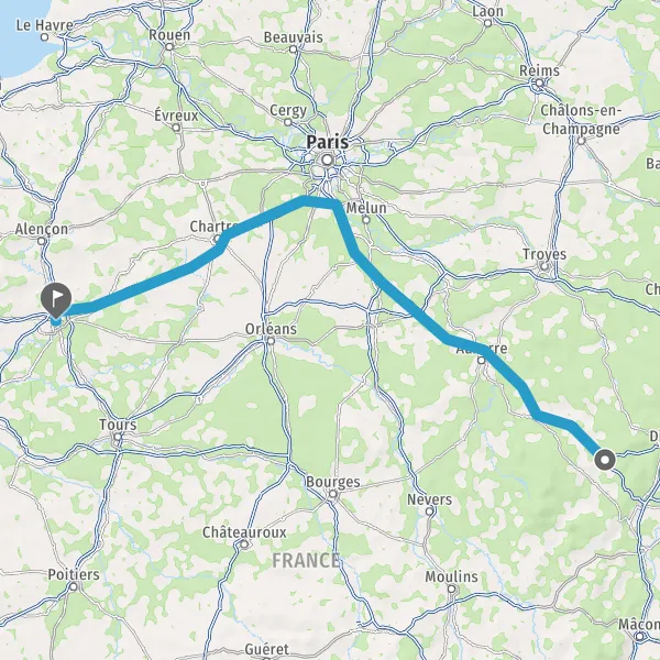 | Distance en voiture | 375 km à 439 km |