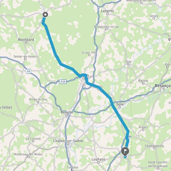 Prendre à droite et rejoindre D971 (Route de Dijon). Continuer sur 13 kilomètres