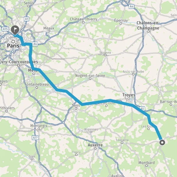 Prendre à droite et rejoindre A5. Continuer sur 130 kilomètres