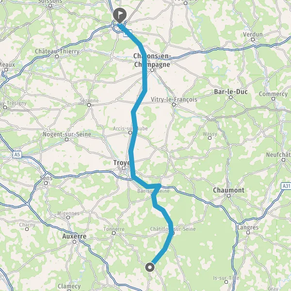 Prendre à droite et rejoindre A5 E17 E54. Continuer sur 22 kilomètres