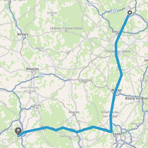 Continuer et rejoindre A89 E70. Continuer sur 77 kilomètres