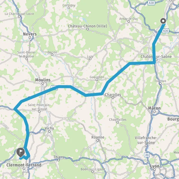 Prendre un ticket (Péage Molinet Est) Payer 1,30 € (Péage Molinet Ouest) Prendre un ticket (Péage Montbeugny Est) Payer 1,90 € (Péage Montbeugny Ouest) Prendre un ticket (Péage Le Montet Est) Payer 1,00 € (Péage Le Montet Ouest) Prendre un ticket (Péage Deux chaises) 76 km