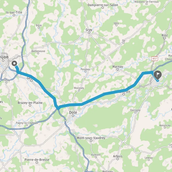 Sortir et rejoindre N57 (Rue de Vesoul). Continuer sur 350 mètres