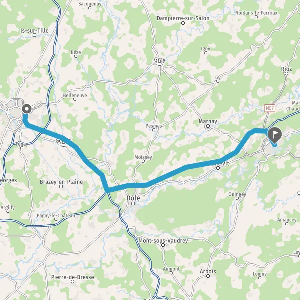 Au rond-point, prendre la 3ème sortie sur N57 (Rue de Vesoul) et continuer sur 2,2 kilomètres