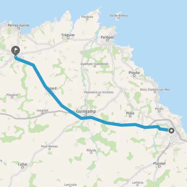 Au rond-point, prendre la 3ème sortie sur Rue de Guingamp et continuer sur 600 mètres